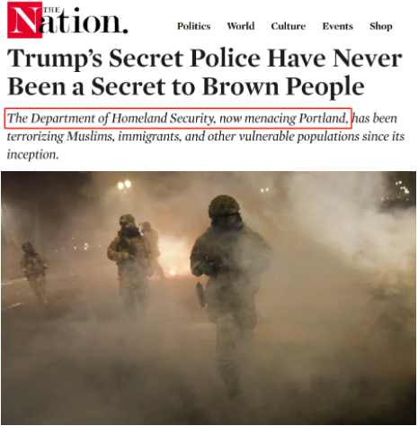 △美国《国家》杂志:威胁波特兰的国土安全部自成立以来一直在恐吓穆斯林、移民和其他弱势群体。