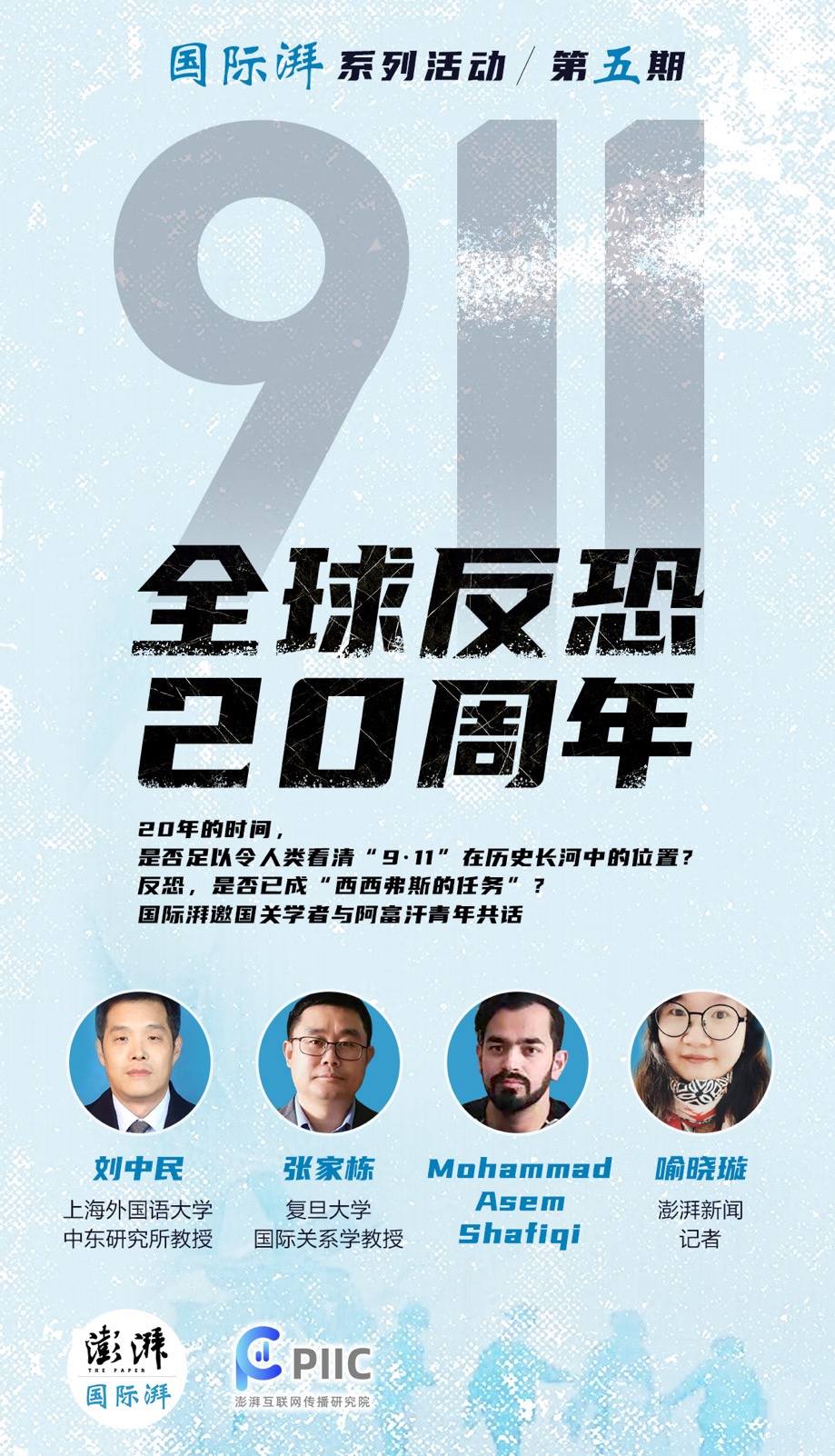 9月14日,我们邀请两位国际关系学者和一位目前在上海工作的阿富汗人,继续共话“全球反恐20年”,也期待你的参与——你关于“9·11”及其后20年世界的反恐努力是否还有什么想了解的?“9·11”发生时你身在何处,对此有何观感,这20年来的看法是否有所变化?等等等等,都欢迎你一起来分享。