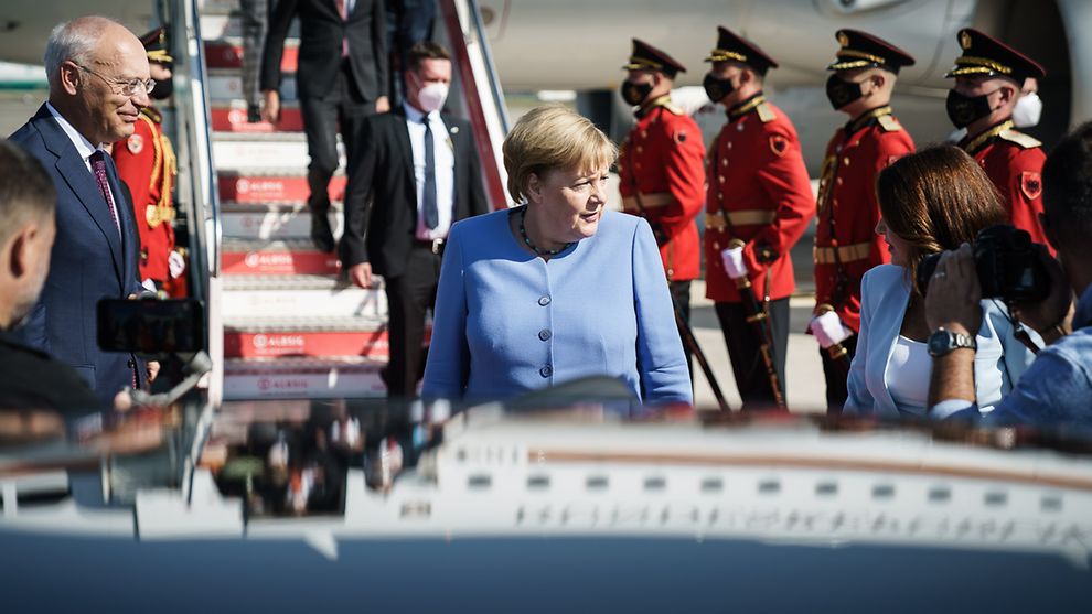 △默克尔14日抵达阿尔巴尼亚首都地拉那(图片来源:德国联邦政府网站)